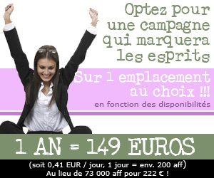 3 emplacements pour ce format : haut de page (à droite du logo et sous le menu sous réserve de disponibilité pour ce dernier emplacement) et bas de page (cf ci-dessous, sous réserve de disponibilité).
